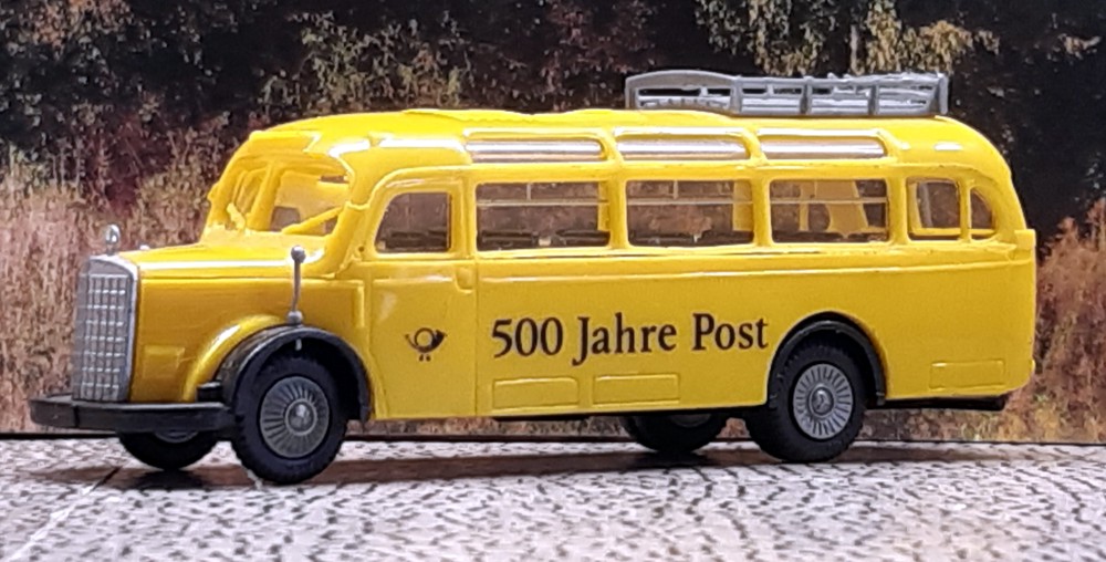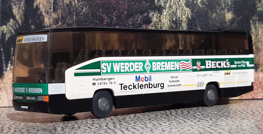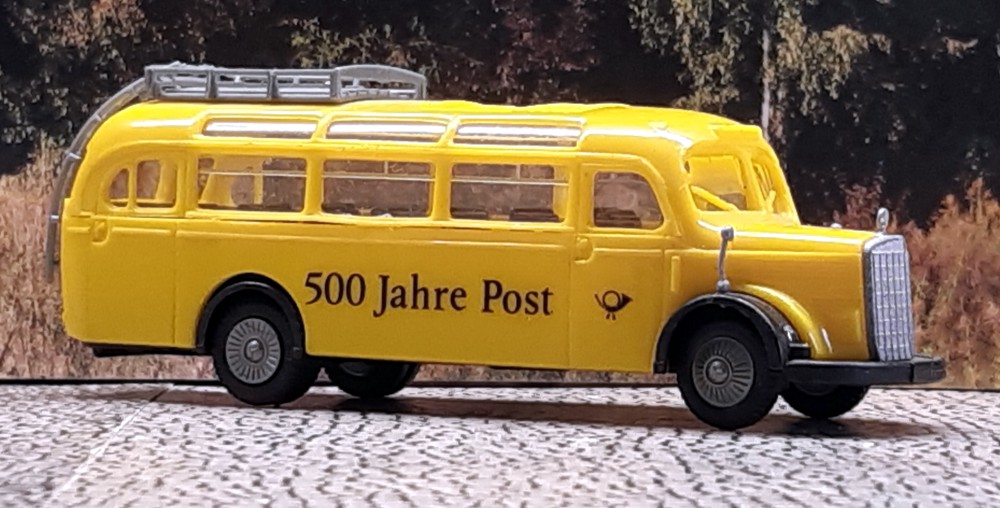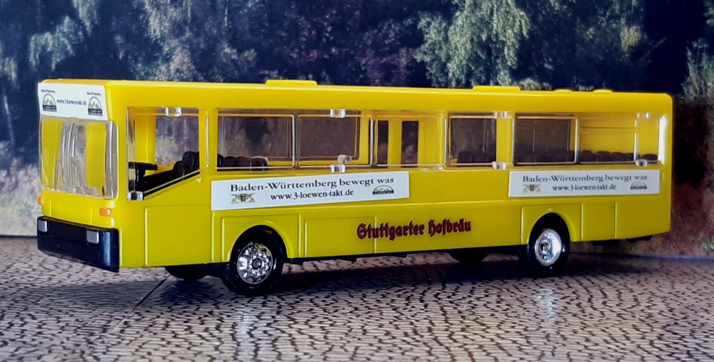 28.02.2025 2012 kam Setra mit der 500er Baureihe auf den Markt. Die ersten Modelle waren der S 515 HD, S 516 HD und S 517 HD. Bereits im Katalogjahr 2013 stellte AWM den S 515 HD als Modell vor. Mit der Nummer 57851.1 erschien der Bus in 1:87. 15.02.2025 Mit dem MAN Lion´s Coach der Firma Fredrich aus Lohfelden kam heute ein würdiges 1000. Modell in die Sammlung. Das Reisebüro Fredrich wurde 1986 von den Brüdern Jürgen und Detlef Fredrich, mit Unterstützung ihrer Mutter Anita, in Lohfelden, einem Ort im Landkreis Kassel, gegründet. In den knapp vierzig Jahren des Bestehens domierten hochwertige Reisebusse der Firmen Neoplan und MAN den Fuhrpark. Das Modell des MAN Lion´s Coach L ´15 erschien bei Rietze im August 2017 mit der Modell-Nr. 74402. Es zeigt den im Original mit KS-DD 44 fahrenden MAN Dreiachser Lion´s Coach L. 26.01.2025 Ein lieber Mensch hat mich heute mit einer wunderschönen Reihe von Setra-Doppeldeckern aus der 200er-, 300er- und 400er-Reihe überrascht. Danke Jasmin! Der Kässbohrer-Setra S 228 DT wurde von 1982-1993 produziert und erreichte die stattliche Stückzahl von 1104 Einheiten. Das Herpa-Modell im Maßstab 1:87 zeigt ihn in der Lackierung des nicht mehr existierenden Reisebüros Terlinden aus Nordrhein-Westfalen. Als Ergänzung noch ein Vorbildfoto vom 09.Novewmber 2010 von einem S 228 DT der Berlin City Tour mit dem Kennzeichen B-OA 228. Der Nachfolger war der S 328 DT, der 1994 in Produktion ging. Bis 2002 wurden hiervon 773 Busse produziert. Ebenfalls im H0-Maßstab ist das Werbemodell von Rietze gefertigt. Das Vorbildfoto entstand am 10. Oktober 2009 in Berlin. Es zeigt einen S 328 DT der Firma Peters Reisen aus Kassel mit der Zulassung KS-PR 130. 2001 kam dann der Setra S 431 DT auf den Markt. Ein Erfolgsmodell, das ca. 2300 mal die Bänder des Werkes verließ. Modellhersteller AWM brachte zur IAA 2002 ein Sondermodell mit dem Namen "Phoenix" heraus. Am 1. Februar 2014 fuhr das Unternehmen Stiefvater aus Binzen für Flixbus in Göttingen mit einem S 431 DT mit dem amtlichen Kennzeichen LÖ-SL 9999 vor. 17.01.2025 Mit ein paar Aufklebern ist aus dem Siku-Standard-Modell (3736) im Maßstab 1:50 der MAN Lion´s City G des Göttinger Unternehmens MOVE geworden. 09.01.2025 Neu in der S ammlung sind zwei Modelle aus vergangenen Tagen. Der IFA H6B in der Überlandausführung mit zwei Klapptüren von 1958 kommt aus der Atlas-Collection im Maßstab 1:72. Er trägt des DDR-Kennzeichen "KN 46-50"..