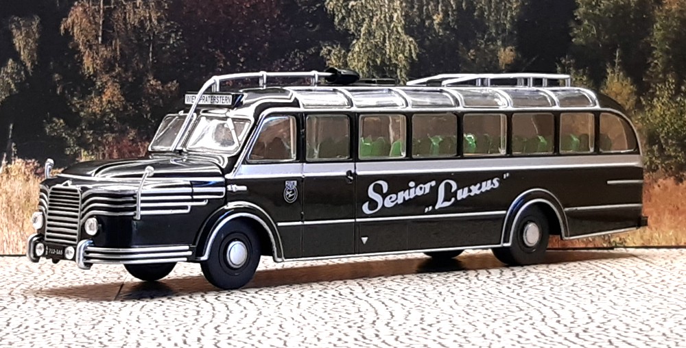 Der Motor des 9,83m langen Busses leistet bei einem Wendekreis von 22m stolze 120 PS. Das Vorbild konnte ich 2010 im Omnibusunternehmen Ewald Banse in Kirchworbis aufnehmen. Ebenfalls im Maßstab 1:72 von Atlas fährt der Steyr 380 q in der Version von 1955 vor. Das Kennzeichen lautet "O 508-722". Bei einer Länge von 7,60 m bietet der Bus Platz für 26 Fahrgäste. Angetrieben von einem Motor der Bauart WD 430 werden die 4470kg mit 90 PS auf die Straße gebracht. Das Vorbild wird bis heute bei Kerschner-Reisen erhalten und gepflegt und kann angemietet werden. News-Archiv 2024 News-Archiv 2023 News-Archiv 2022 News-Archiv 2021 News-Archiv 2020 News-Archiv 2019 News-Archiv 2018 |